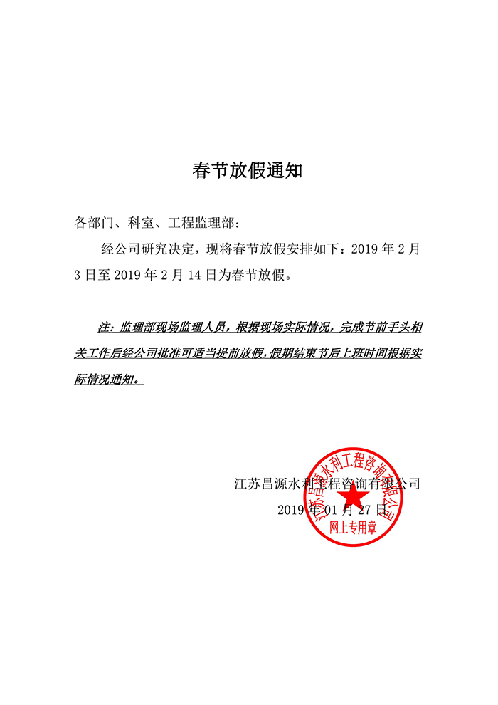 2019年春節(jié)放假通知