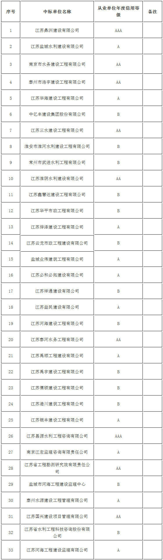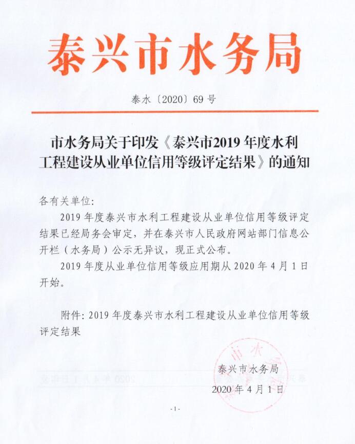 市水務局關于印發《泰興市2019年度水利工程建設從業單位信用等級評定結果》的通知